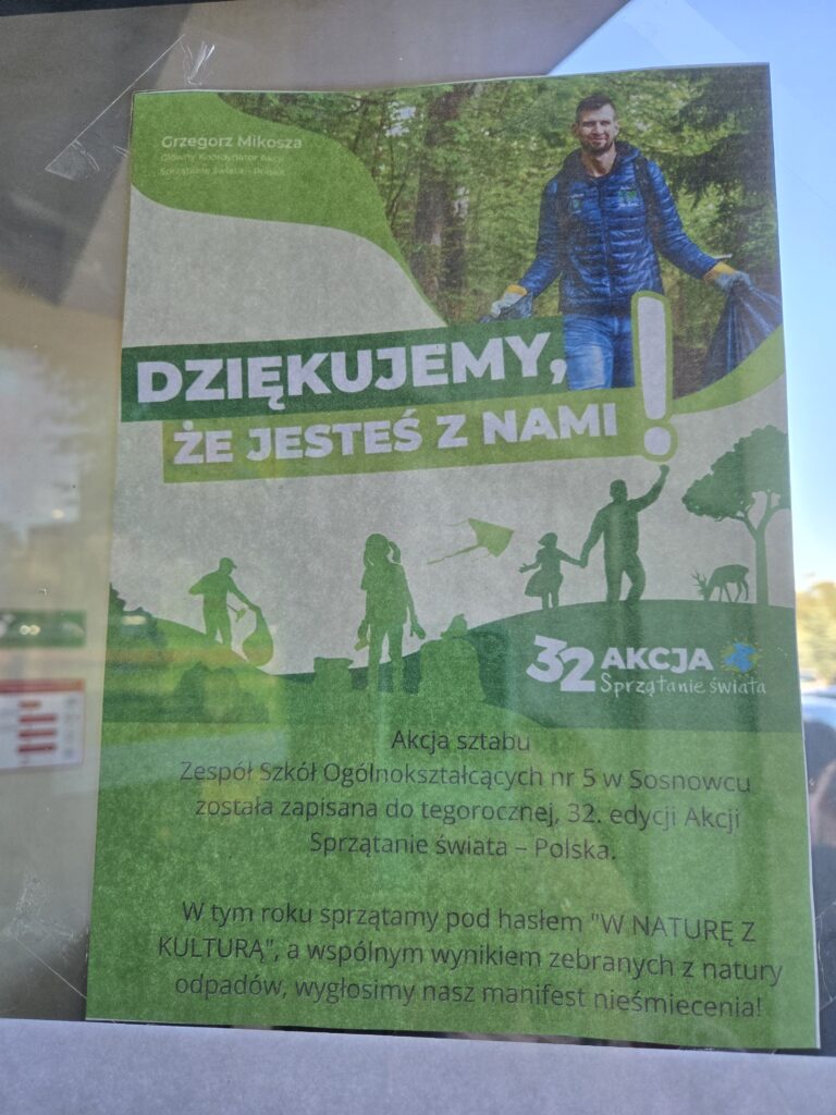 Nasza szkoła w dniach 15-19 września wzięła udział w ogólnopolskiej akcji „Sprzątanie świata”, organizowanej we współpracy z fundacją Nasza Ziemia. Tegoroczne hasło brzmiało: „W naturę z kulturą”.
