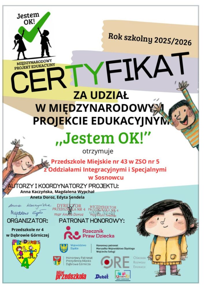 Nasze Przedszkole przystąpiło do Projektu Edukacyjnego „Jestem OK!” , który wspiera