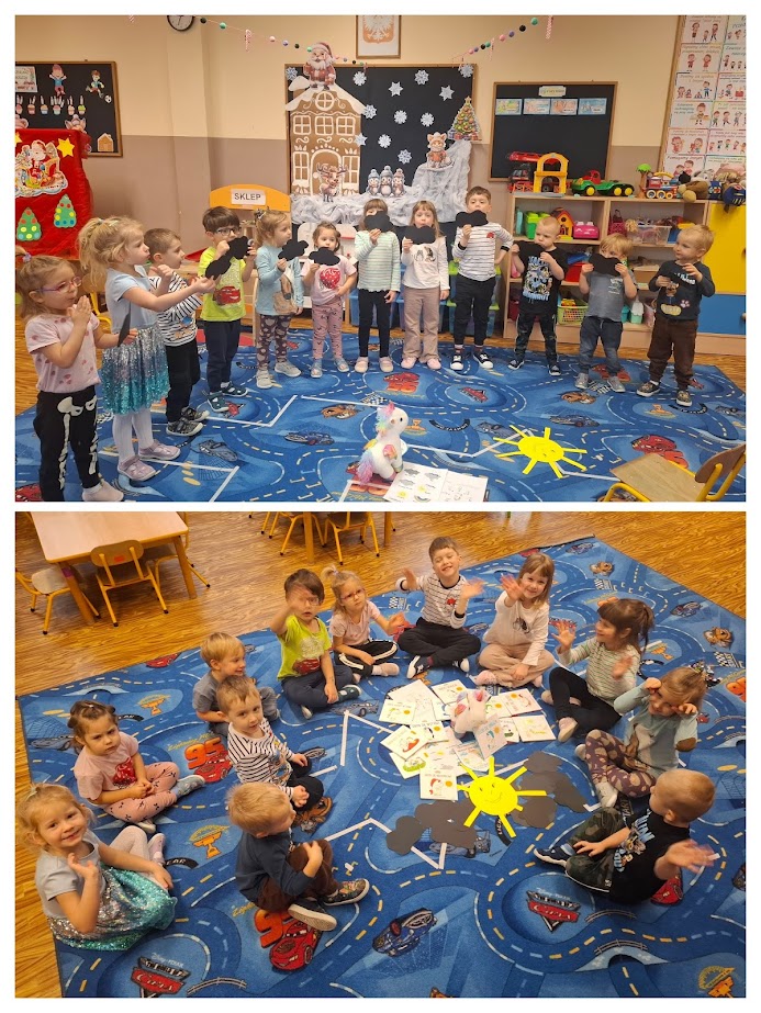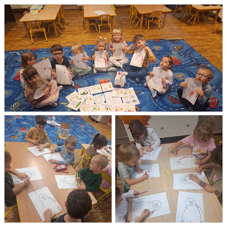 Przedszkolaki wysłuchały książeczki „Gucio mówi dziękuję”, określały jak się czują,