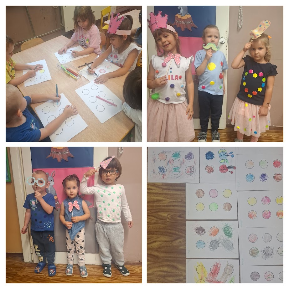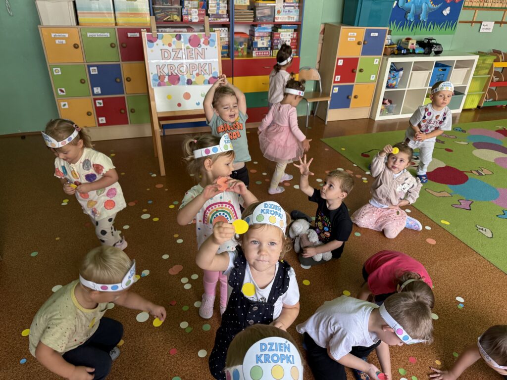👕 Dzieci przyszły ubrane w ubrania w kropki, a cały dzień upłynął pod znakiem twórczych zabaw, eksperymentów plastycznych i rozmów o odwadze w wyrażaniu siebie. Nie zabrakło wspólnego malowania, zabaw sensorycznych oraz wystawy małych dzieł sztuki naszych przedszkolaków.