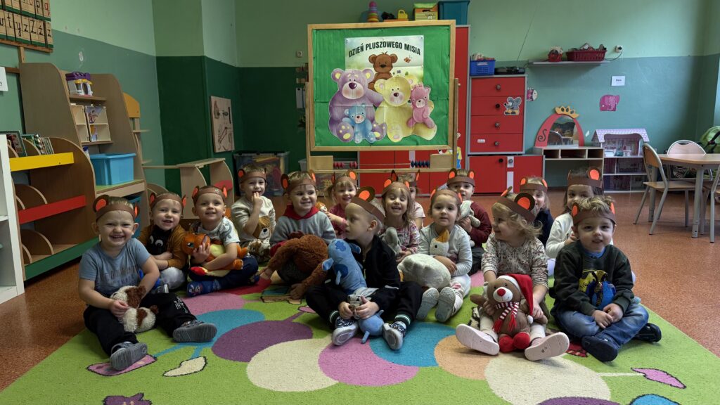25 listopada w naszym przedszkolu obchodziliśmy Dzień Pluszowego Misia – święto pełne uśmiechu, przytulania i dobrej zabawy. Dzieci przyniosły do przedszkola swoje ukochane pluszowe misie, które towarzyszyły im podczas całego dnia zajęć.