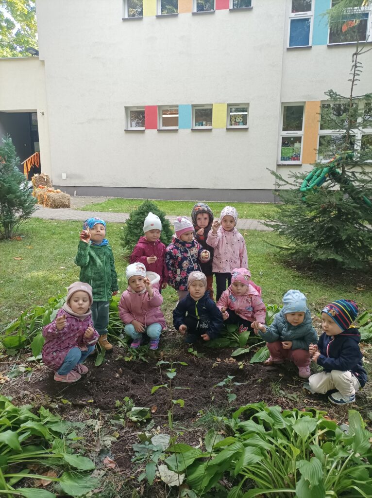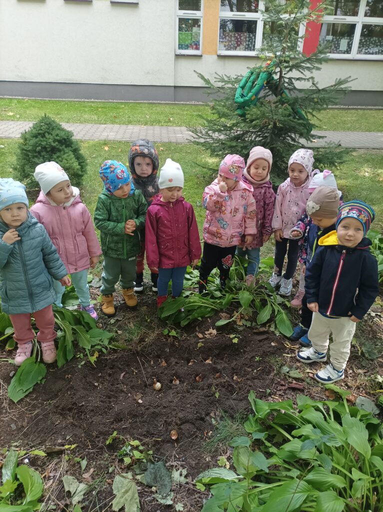 Dzieci wzbogacały również swoją wiedzę ogólną dotyczącą ogrodnictwa. Samodzielne grabiły liście, przekopywały ziemię tworząc ogródek dla cebulek żonkili.