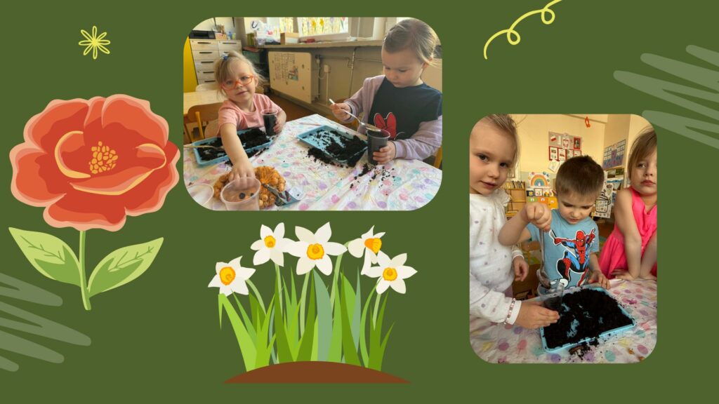 W ostatnich dniach dzieci wzięły udział w wiosennych przygotowaniach do naszego ogródka. Podczas zajęć mali ogrodnicy sadzili cebulki, ucząc się przy tym, jak dbać o rośliny i przyrodę.