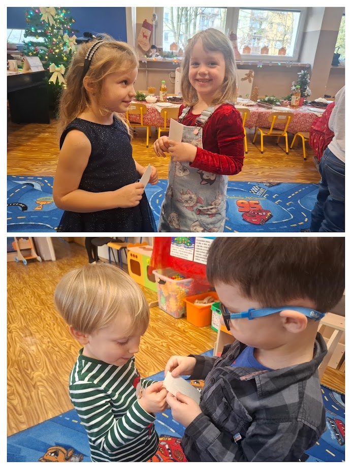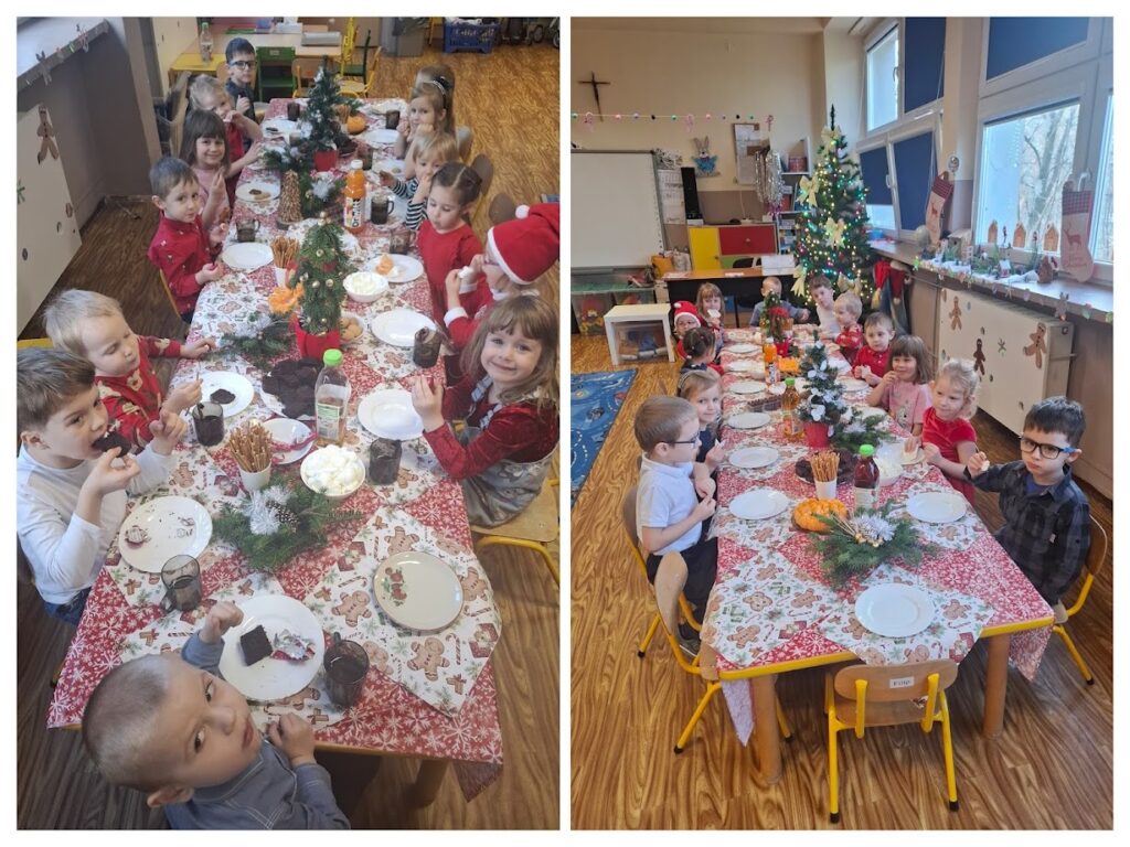 uroczystą Wigilię. Dzieci przyszły do przedszkola odświętnie ubrane by zasiąść wspólnie do