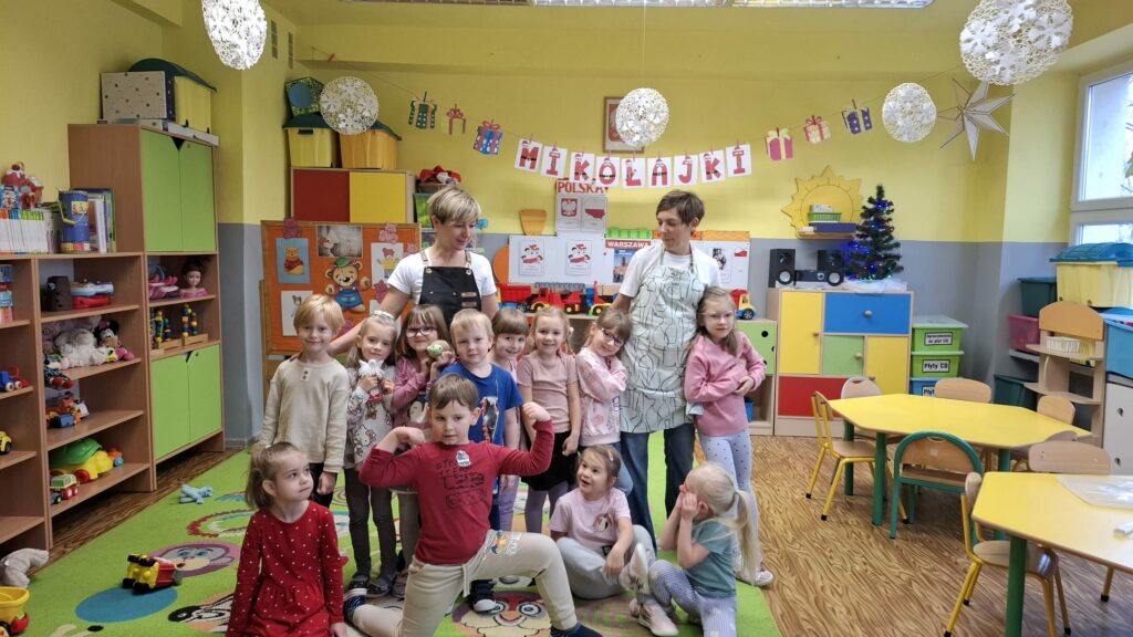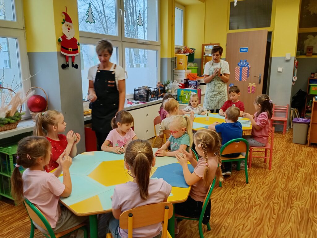 Dnia 28.11.2025 r. w ramach warsztatów ceramicznych, pani Asia i pani Kinga z pracowni ceramicznej ZSO nr 5 odwiedziły grupę Krasnale.