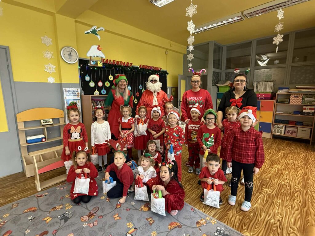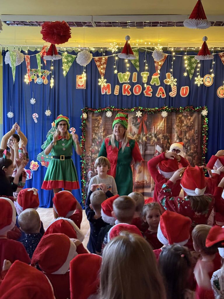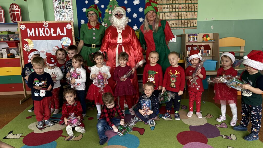 5 grudnia nasze przedszkole odwiedził długo wyczekiwany Gość – Święty Mikołaj. Towarzyszyły mu elfy, Pani Agnieszka i Hania, które poprowadziły pełną radości zabawę mikołajkową dla wszystkich przedszkolaków.