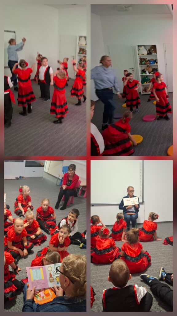 W październiku grupa Motyle została zaproszona do Zagłębiowskiej Mediateki w Sosnowcu, przez pracownika Urzędu Miasta panią Edytę Wykurz na inaugurację cyklu wydarzeń pn. „Sosnowiec – Miasto Wielu Kultur” realizowanych w ramach projektu „WELDI”. Dzieci z grupy Motyle podczas wydarzenia wystąpiły i zaprezentowały Taniec Hiszpański, zwiedziły Mediatekę oraz uczestniczyły w warsztatach w Bibliotece. Bardzo dziękujemy organizatorom za zaproszenie.