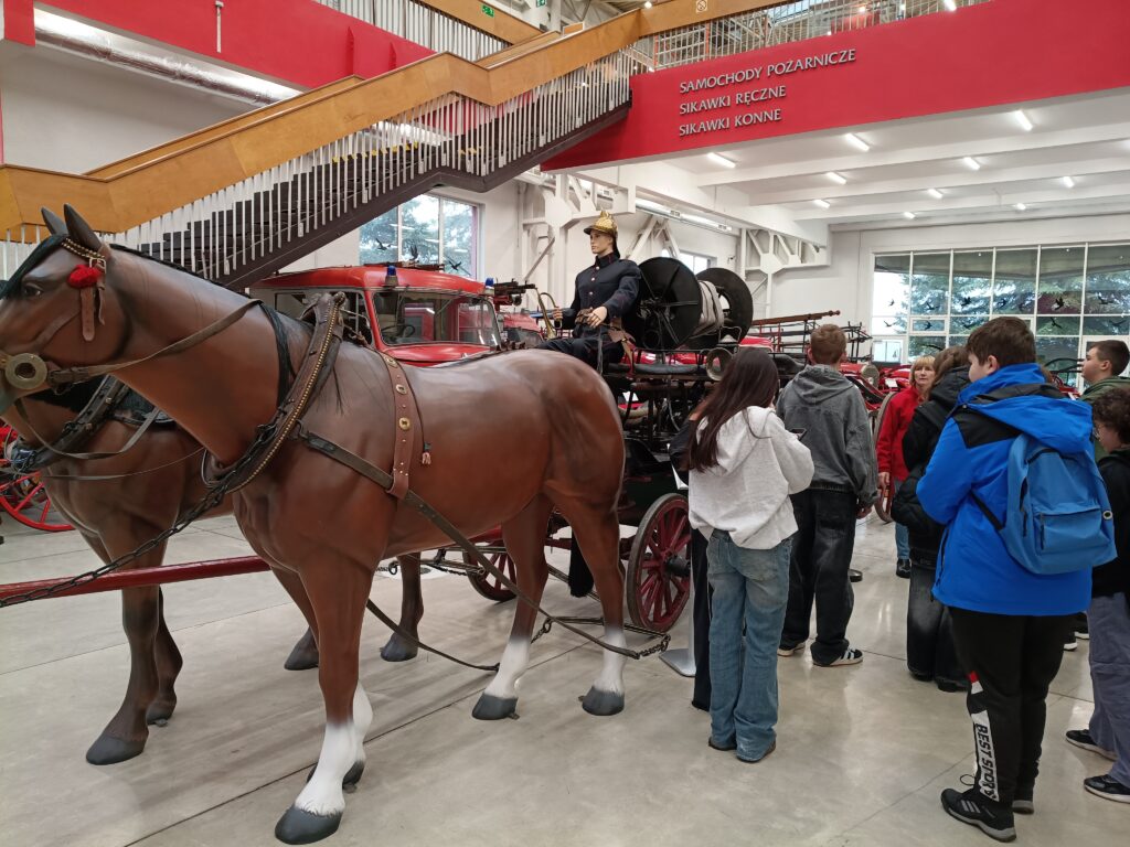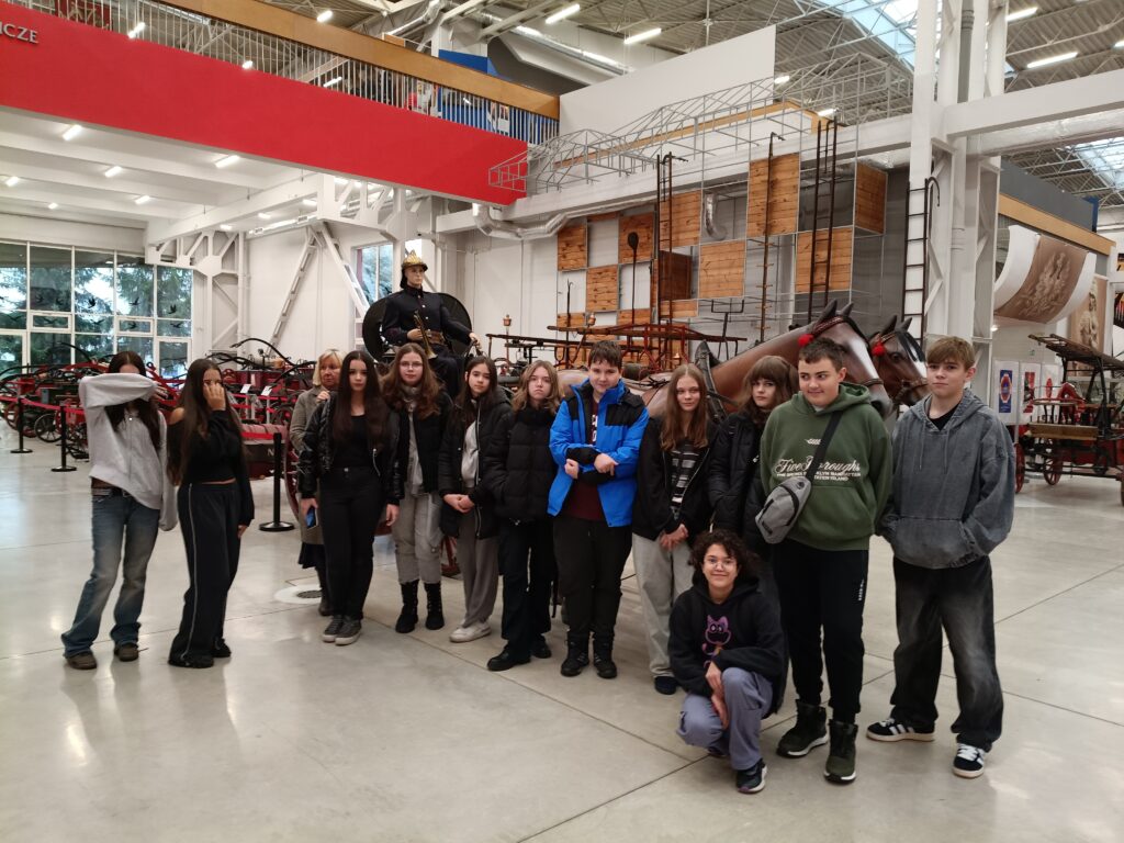 Uczniowie klasy 7d odwiedzili Centralne Muzeum Pożarnictwa w Mysłowicach, poznając historię straży pożarnej i wystawę największych w Polsce zbiorów zabytkowych wozów, sikawek, urządzeń i mundurów strażackich. W trakcie wycieczki w Muzeum Miasta Mysłowice nasi uczniowie uczestniczyli w lekcji historii regionalnej, poznając dzieje Trójkąta Trzech Cesarzy.