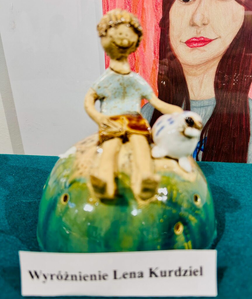 Uczniowie uczestniczący w zajęciach koła ceramicznego wzięli udział w wojewódzkim konkursie pt. „Zwierz niejedno ma imię”, organizowanym pod patronatem Starosty Będzińskiego. Prace konkursowe zostały zaprezentowane na wystawie w Centrum Kultury w Będzinie, a naszą szkołę reprezentowali: Gabriela J. (kl. 5a) , Malwina G. (kl. 6b), Lena K. (kl. 7a) , Michał K. (kl. 4d) , Łucja P. i Janek K. (kl. 3c).