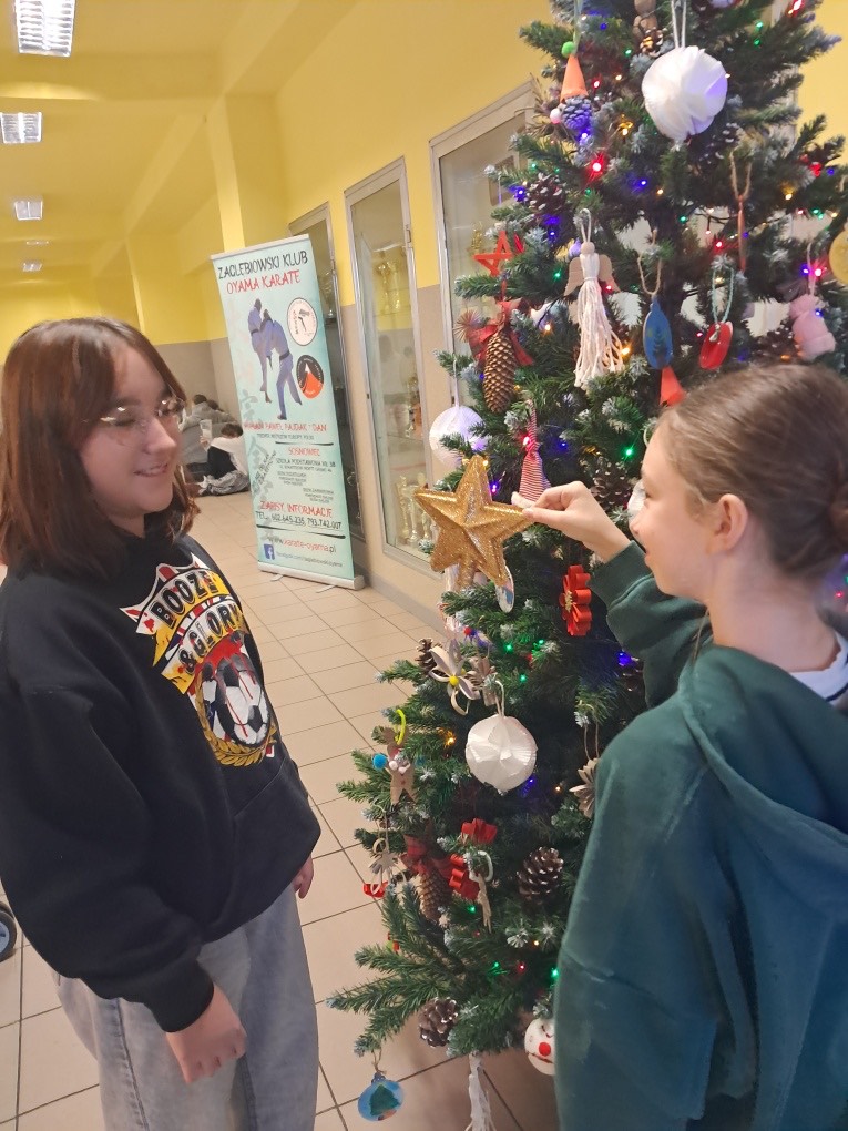Tuż przed Mikołajkami SU z całą społecznością szkolną zaangażowali się w przygotowanie świątecznej choinki. A choinka to symbol Świąt Bożego Narodzenia, do których zmierzamy i które zbliżają się do nas wielkimi krokami ku uciesze nas wszystkich, bo to czas dany na bycie razem, na życzenia i na otwarte serca. Nasi uczniowie pięknie udekorowali choinkę, również zabawkami, które specjalnie przynieśli na tą okazję. Dziękujemy wszystkim za poświęcony czas, za szczere chęci, za rozpoczęcie pięknego czasu Świątecznego 2025.