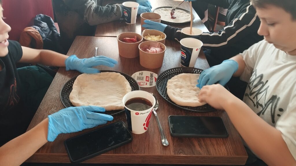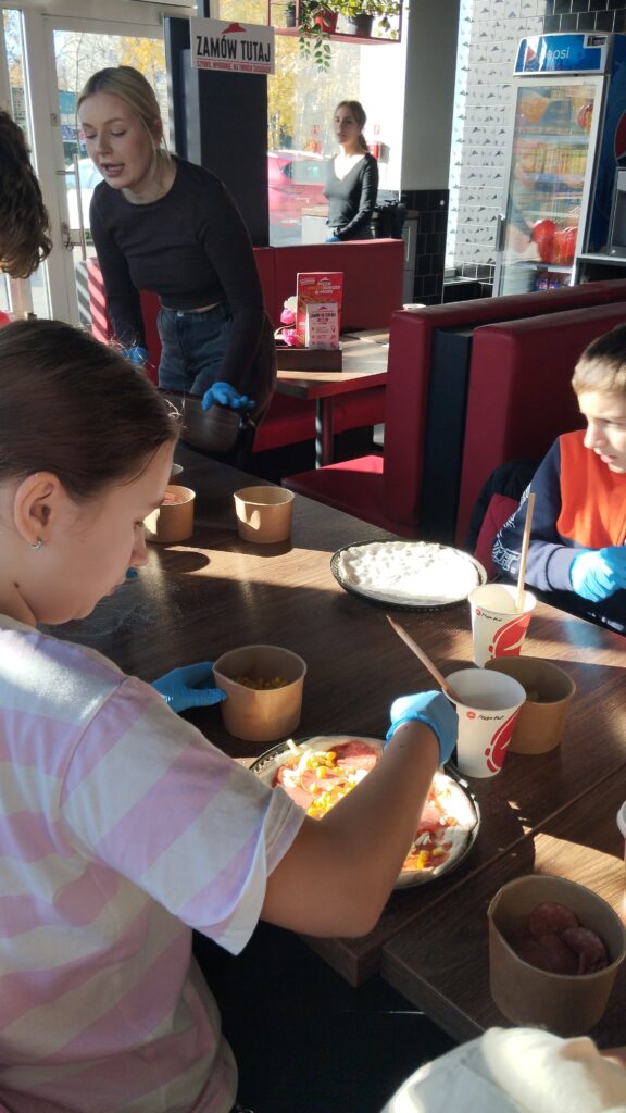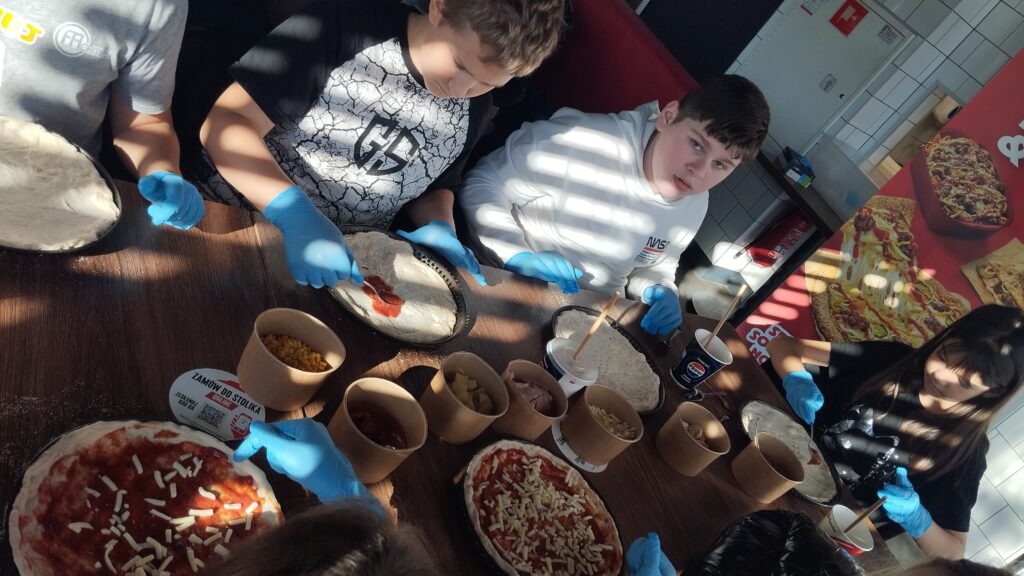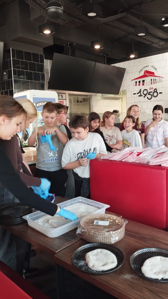 Uczniowie klasy 5c i 5e wzięli udział w warsztatach kulinarnych i samodzielnie przygotowywali pizzę. Na początku poznali pizzerię od zaplecza, wysłuchali krótkiego wykładu dotyczącego przygotowywania ciasta na pizzę a następnie przystąpili do samodzielnego wykonania pizzy. Mieli przy tym świetną zabawę i zdobyli wiedzę na temat pracy w zawodzie pizzaiolo/ pizzera – kucharza specjalizującego się w przygotowywaniu pizzy od podstaw. To był dzień pełen wrażeń i pozytywnych emocji.