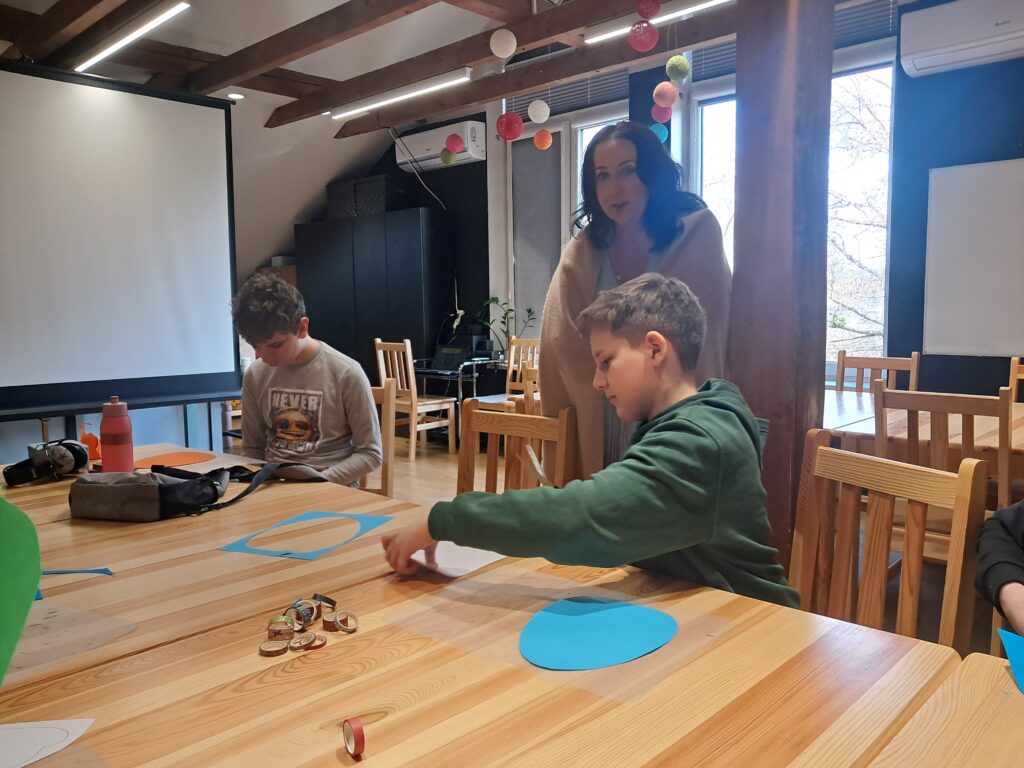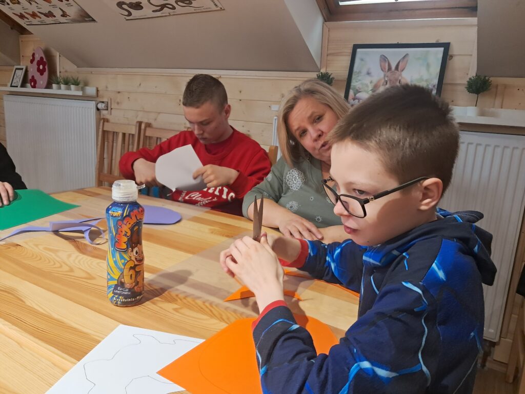 Dodatkowo dzieci mogły wykonać własne wielkanocne jajko – ozdobę na wiosnę, rozwijając kreatywność i zdolności manualne. Tworzenie ozdób było okazją do łączenia tradycji świątecznych z nauką o przyrodzie i ekologicznym podejściem do zabawy.