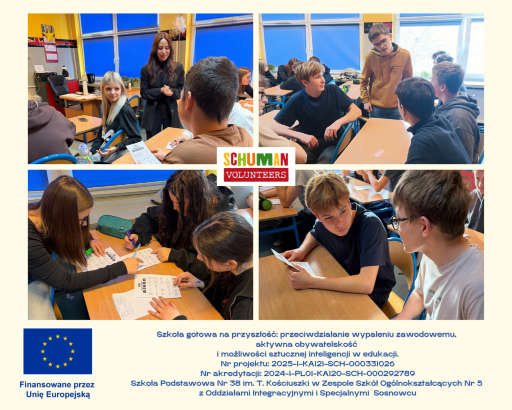W poniedziałek, 12 stycznia 2026, odbyły się warsztaty edukacyjne prowadzone przez wolontariuszy realizujących projekt Europejskiego Korpusu SolidarnościFaride z Hiszpanii oraz Krisa Schneidera z Niemiec, działających na rzecz Fundacji Schumana i promujących wartości europejskie.