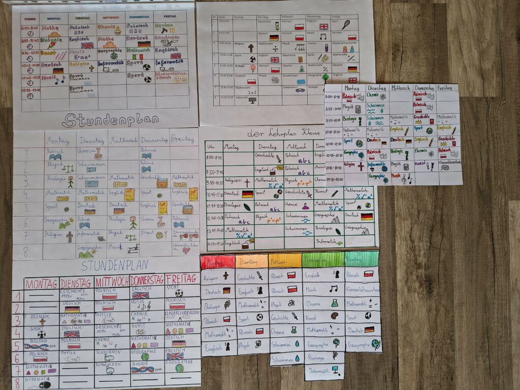 Przedstawiam laureatów konkursu języka niemieckiego dla uczniów klas 7 na najładniejszy plan lekcji w języku niemieckim:
