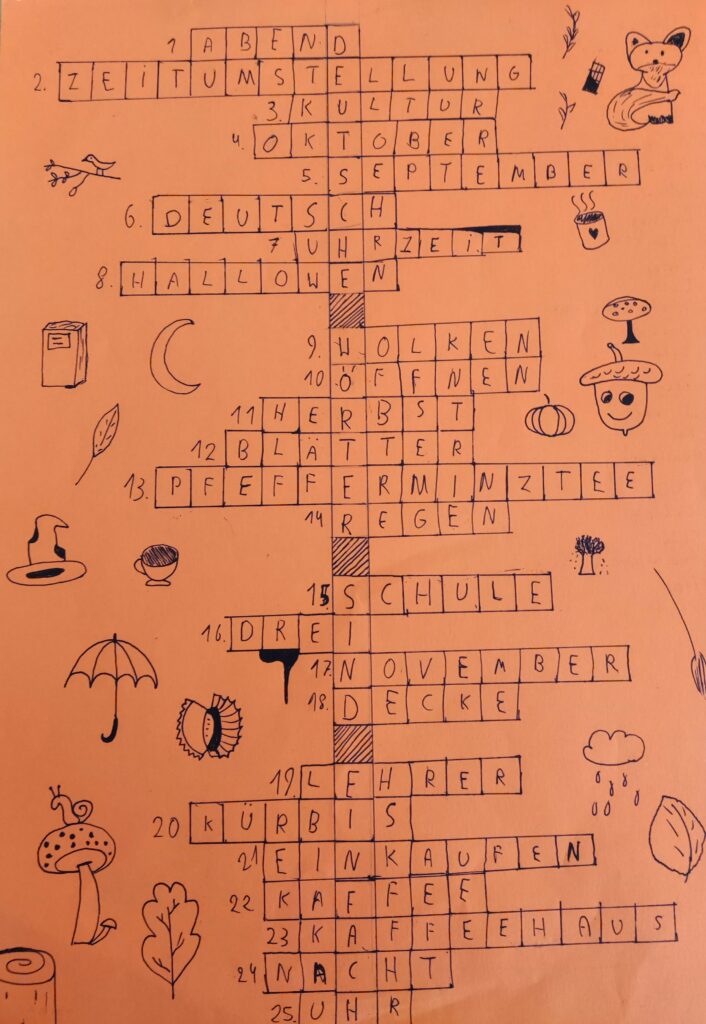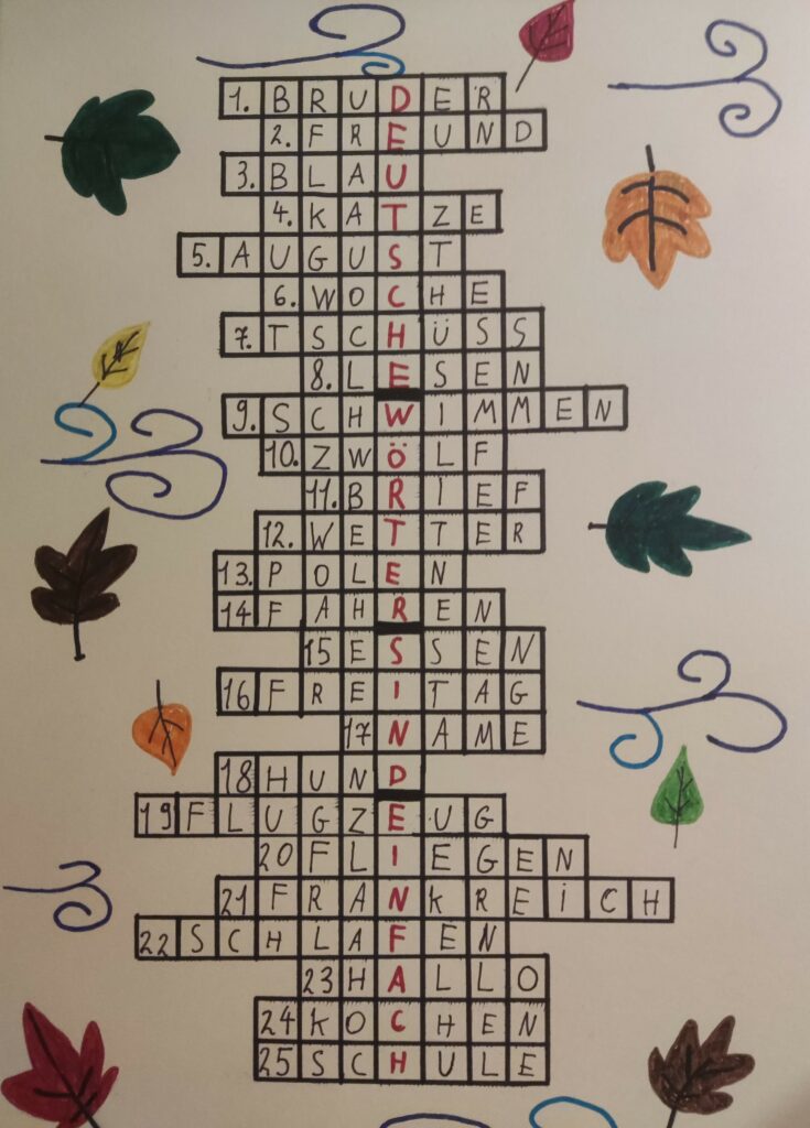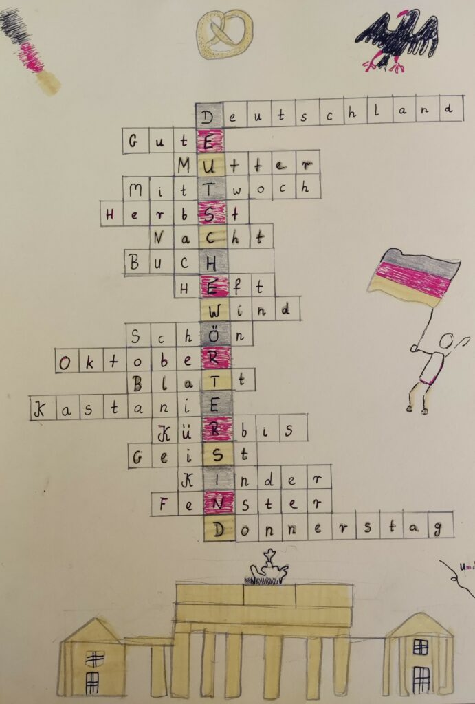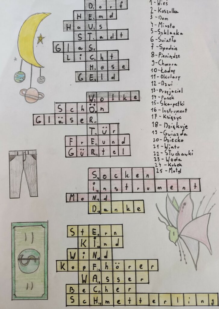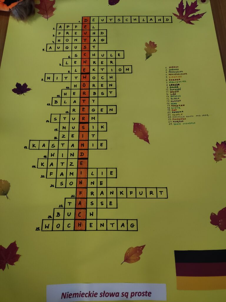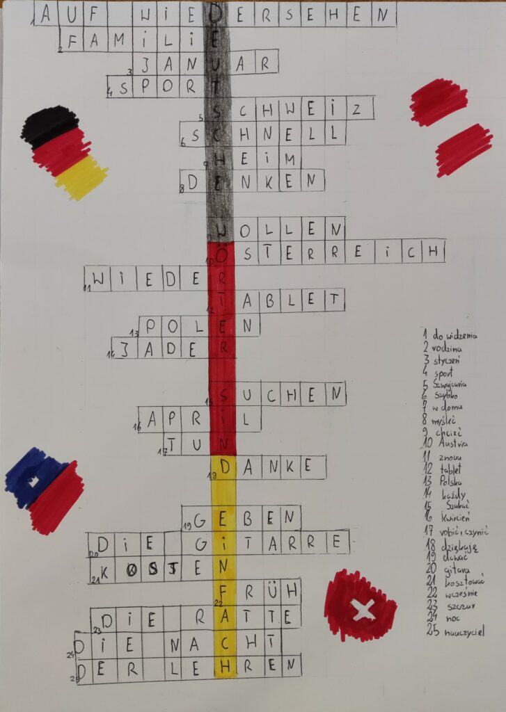 Podaję wyniki konkursu zorganizowanego w ramach obchodów Europejskiego Dnia Języków, w którym uczniowie klas 7 i 8 wykonali przepiękne krzyżówki w języku niemieckim: