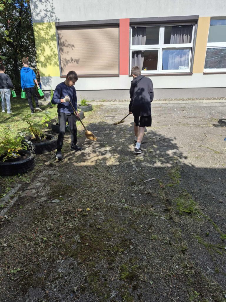 W ramach projektu oraz akcji „Sprzątanie świata” sadziliśmy drzewa i porządkowaliśmy okolice szkolnego ogródka, w którym rosną nowe rośliny. Dzięki tym inicjatywom uczniowie nie tylko dbają o naszą szkolną przestrzeń, ale też uczą się, jak ważna jest odpowiedzialność za środowisko i sprawiedliwa transformacja klimatyczna.